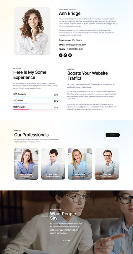 This webdesign agency theme features awesome and clean designs specifically tailored to marketing services such as SEO, marketing, website analysis, optimization, link building, etc.